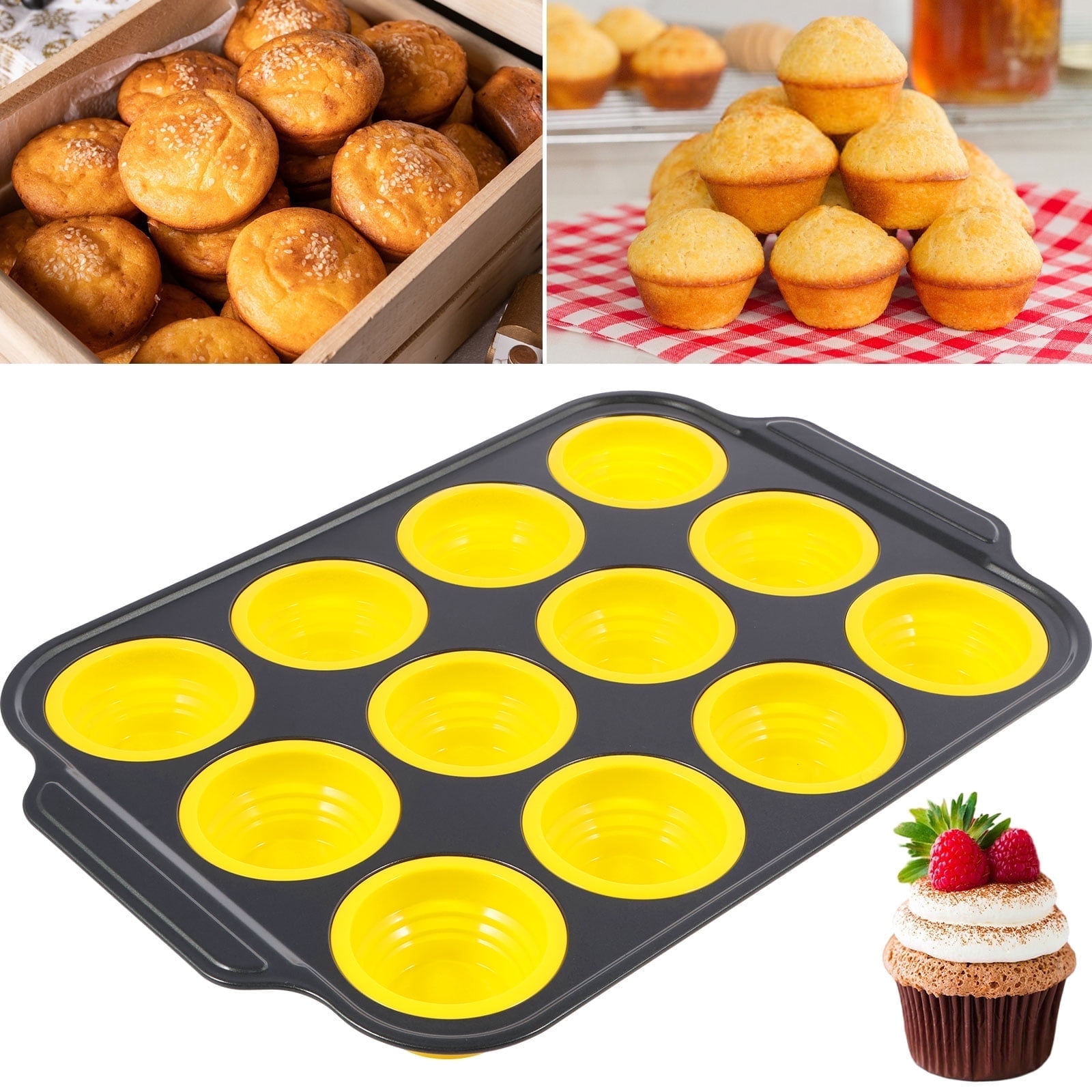 12 Cavity Carbon Steel Mini Muffin Pan Non Stick Cupcake Pan Dishwasher Safe Temperature Resistant Egg Bites Pan With Double Handle for Oven
