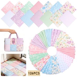 126 Pcs Assorted Charm Pack for Quilting Cotton Fabric Square 5 x 5 Inch Precut Quilted Fabric Floral Patchwork for Sewing DIY Craft