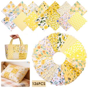 126 Pcs Quilting Cotton Fabric Squares 5×5 Inch Precut Printed Charm Pack for Quilting Soft Quilting Fabric Floral Patchwork for DIY Sewing Crafts