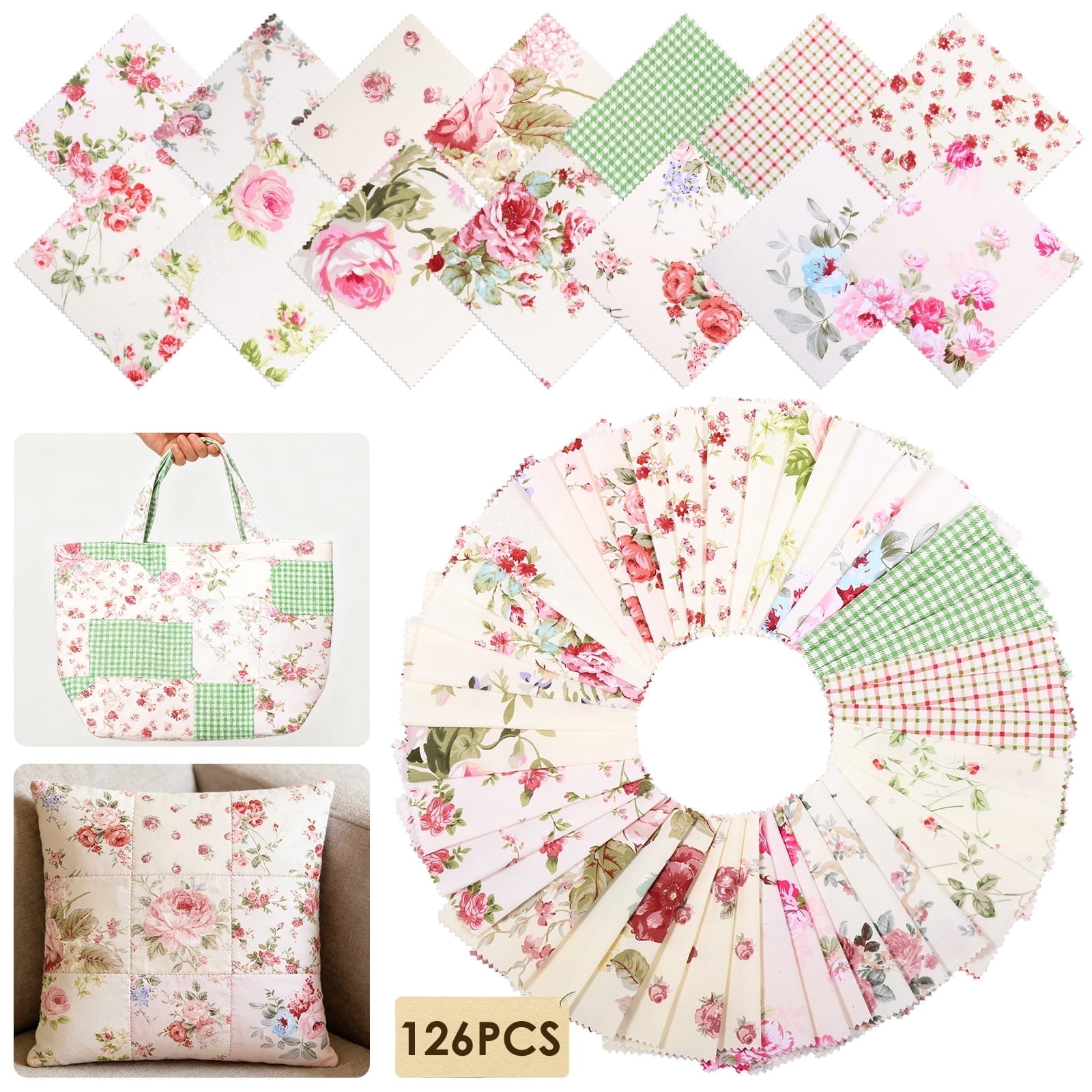 126 Pcs Quilting Cotton Fabric Squares 5×5 Inch Precut Printed Charm Pack for Quilting Soft Quilting Fabric Floral Patchwork for DIY Sewing Crafts
