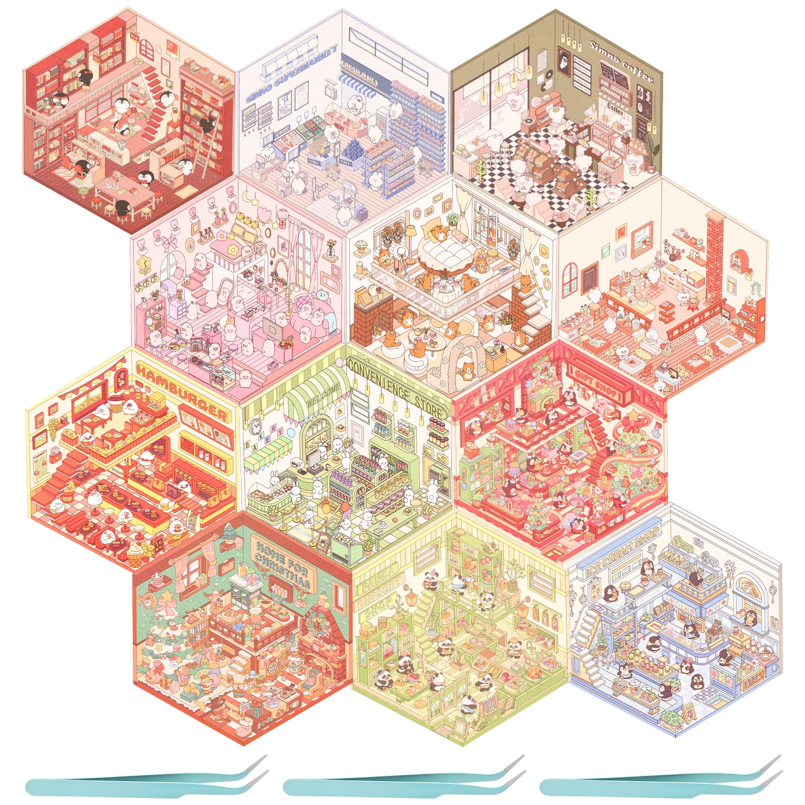 12Pcs DIY 3D House Stickers Set Reusable 3D Cartoon Scene Stickers Funny Mini Room Scene Sticker Cute 3D Miniature Scene Sticker 3D Sticker Scene DIY Landscaping Sticker for Present