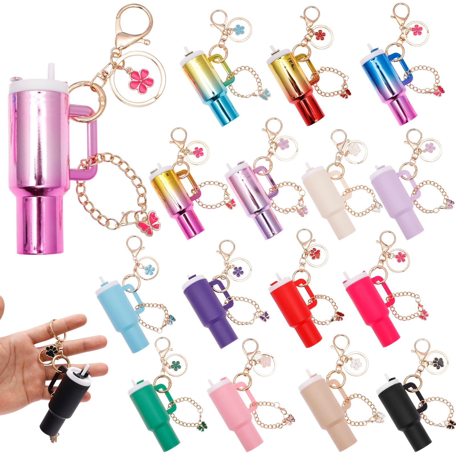 16Pcs Mini Tumbler Keychain Cute Mini Cup Keychain Lipstick Holder Charms for Women Girls Backpack Bag Handbag