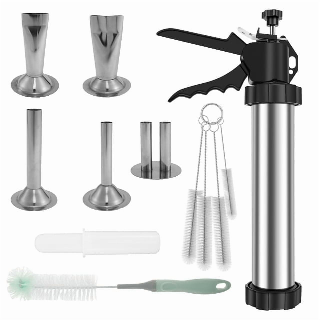 2.1 LB Professional Jerky Gun Kits,Sausage Stuffer,Stainless Steel Jerky Maker,Jerky Shooter,Beef Jerky Making Gun with 5 Nozzles,1 meat pusher and 5 Cleaning Brushes