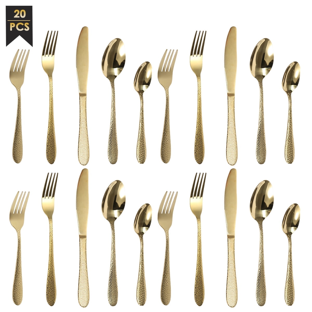 20 Pcs Silverware Set for 4 Stainless Steel Flatware Set Hammered Utensil Set Mirror Polished Cutlery Set Forks Knives and Spoons Set