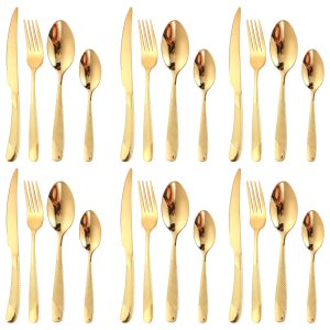 Be the first to review “24PCS Modern Hammered Flatware Utensil Set for 6 Stainless Steel Cutlery Silverware Set Includes Knives Forks Spoons for Home Restaurant” Cancel reply