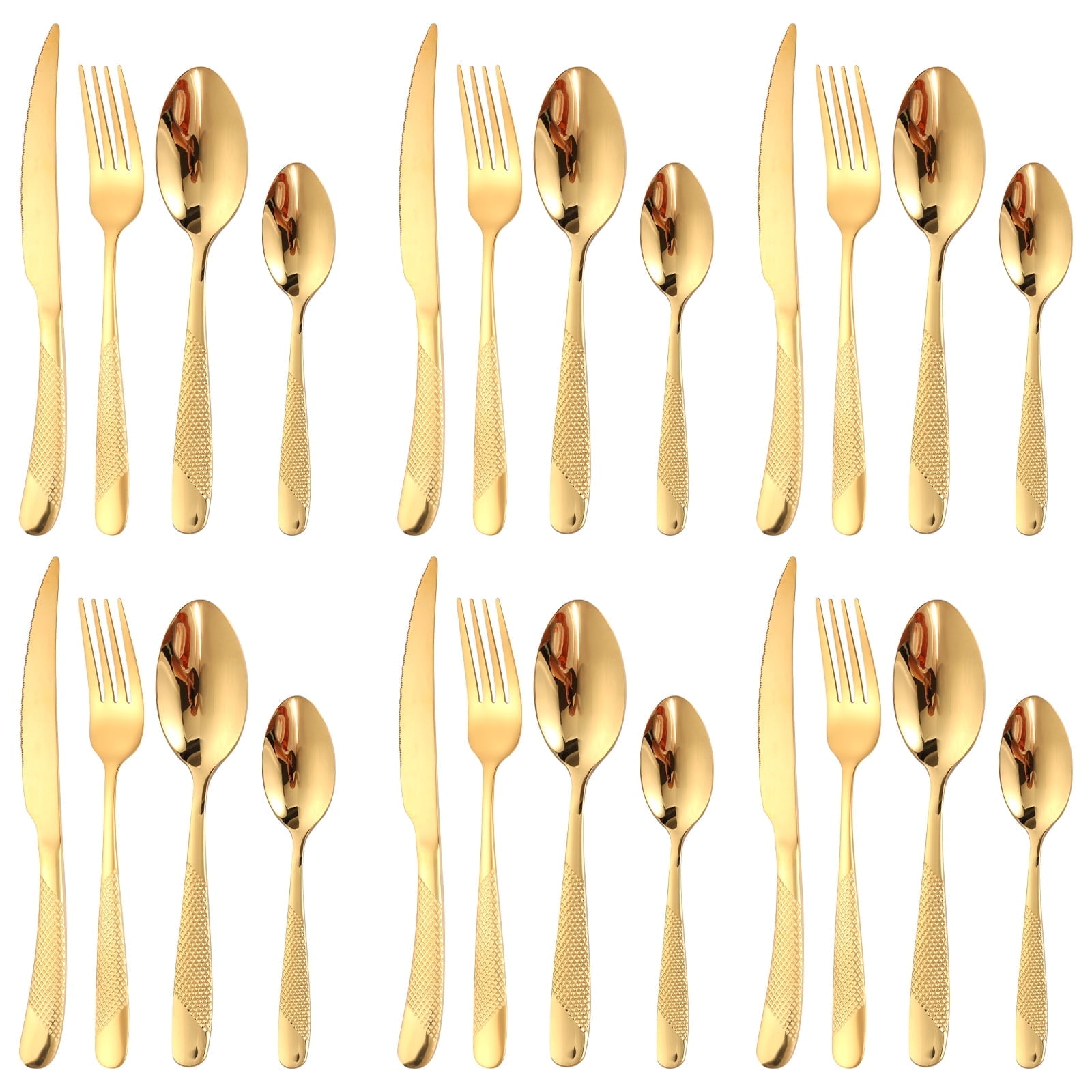 24PCS Modern Hammered Flatware Utensil Set for 6 Stainless Steel Cutlery Silverware Set Includes Knives Forks Spoons for Home Restaurant
