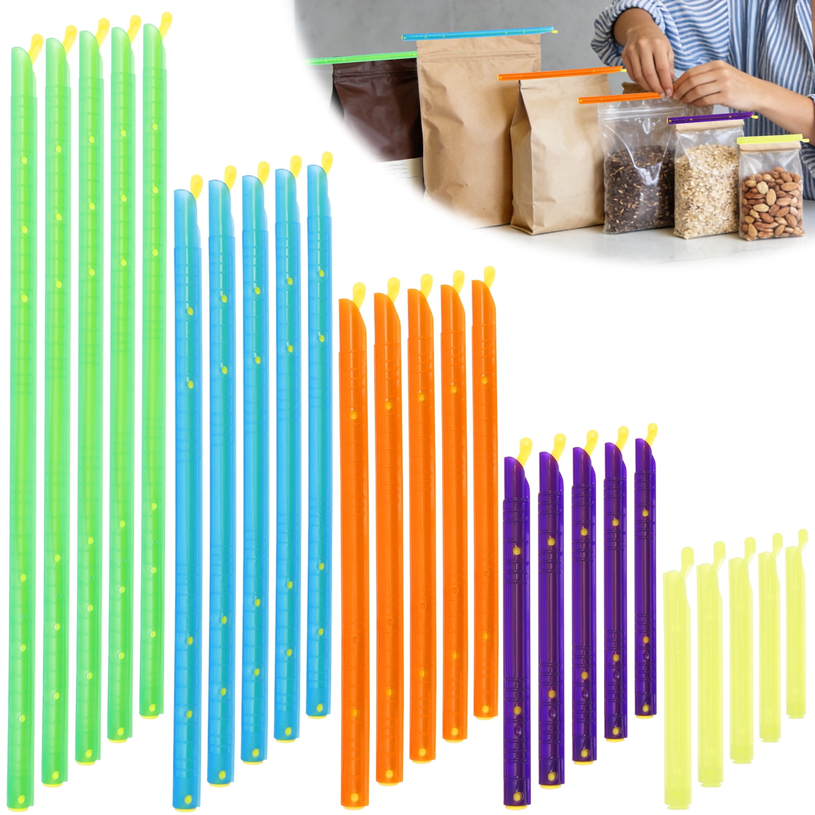 25/30 Pack Bag Sealer Clips, 5 Sizes 3.54 to 11.22 Inch Snack Bag Closure Clips, Strong Seal Food Storage Clips for Chip Bags, Kitchen Pantry Organization