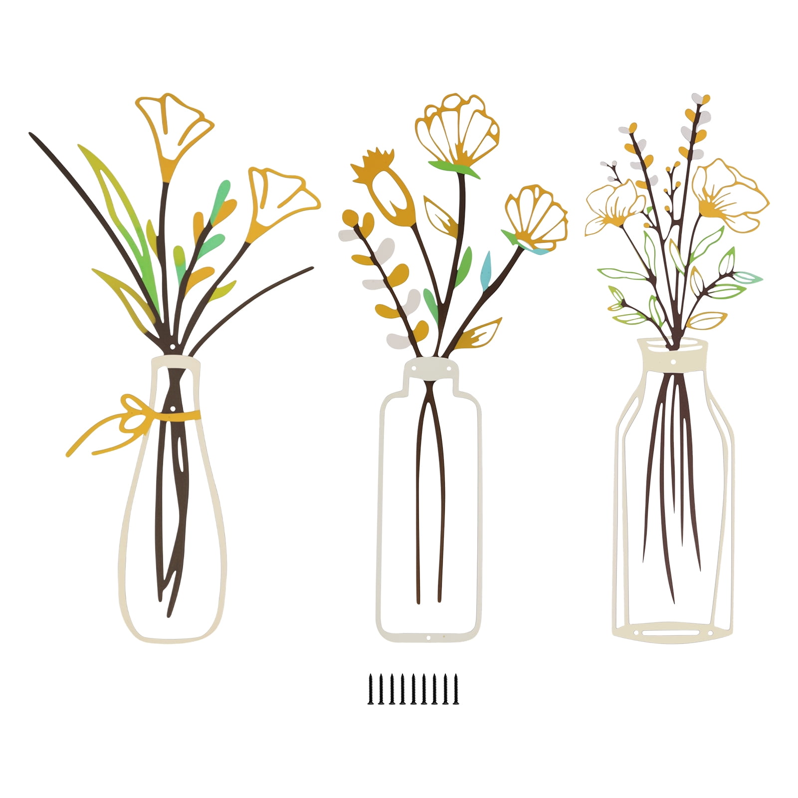 3-Piece Metal Flower Wall Decor Minimalist Metal Wall Sculptures for Bedroom, Living Room, Kitchen, Lightweight and Gift-Worthy for Housewarming