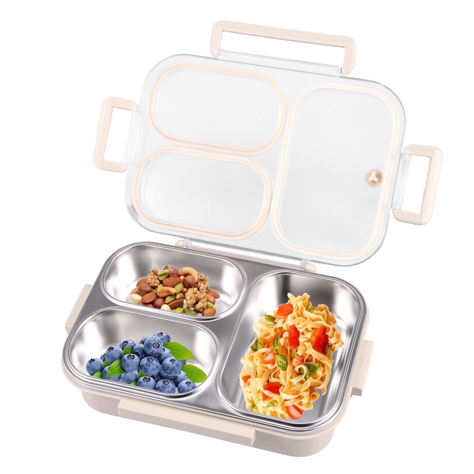 304 Stainless Steel Food Box 33oz 1000ml Leakproof Lunch Box 3 Compartment Meal Bento Box Food Storage Container for School Office