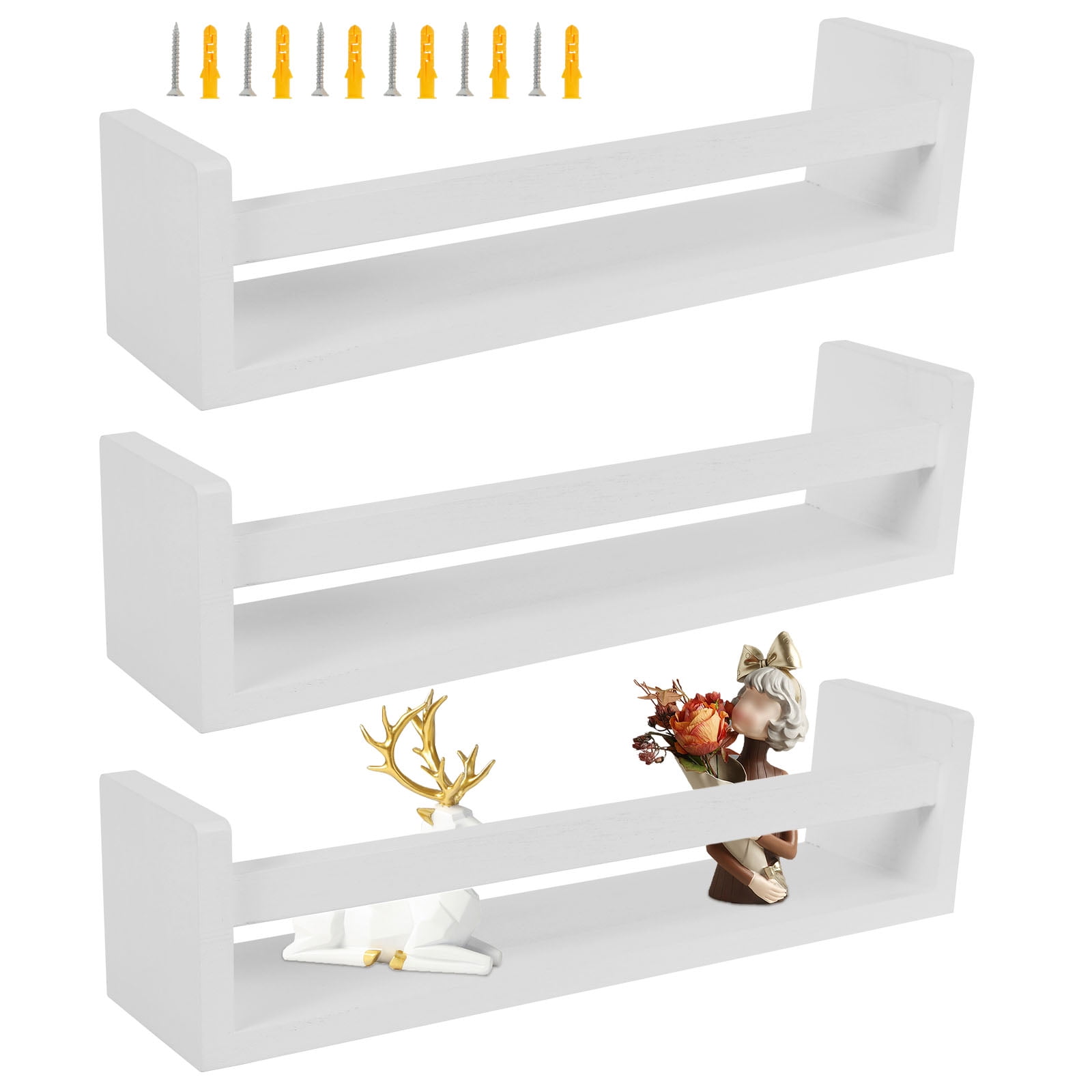 3Pcs Floating Nursery Book Shelves Wooden Wall Mounted Bookshelf White Floating Storage Shelves for Bedroom Bathroom Toy