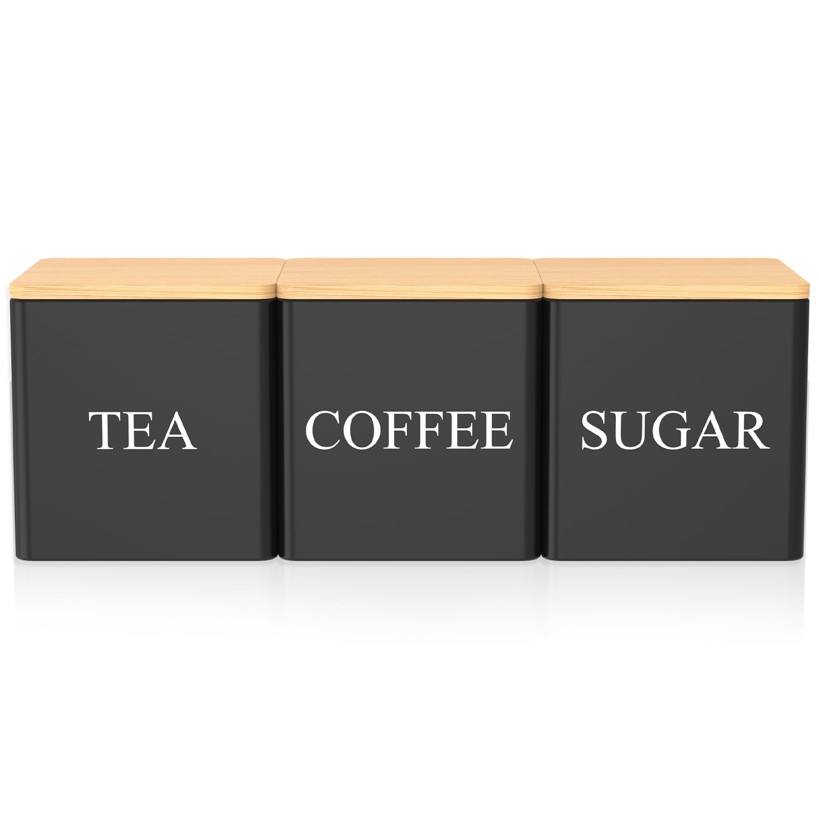 3Pcs Tea Sugar Coffee Canister Set with Bamboo Lids Large Capacity Tea Sugar Coffee Container Set Sealed Tea Sugar Coffee Jar Set Space Saving Coffee Canister Set for Coffee Sugar Tea
