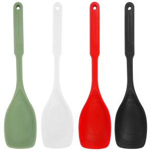 4 Pcs Silicone Cooking Spoon Set with Deep Bowl and Measurement Mark Nonstick Solid Spoon Heat Resistant Basting Spoon for Mixing Serving Stirring Scooping Scraping