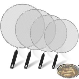 4 Pieces Splatter Guard Stainless Steel Fine Mesh Splatter Screen Splash Proof Scald Oil Proof Strainer Drain Board for Frying Pan Cooking(13″,11.4″,9.8″,7.4″ )