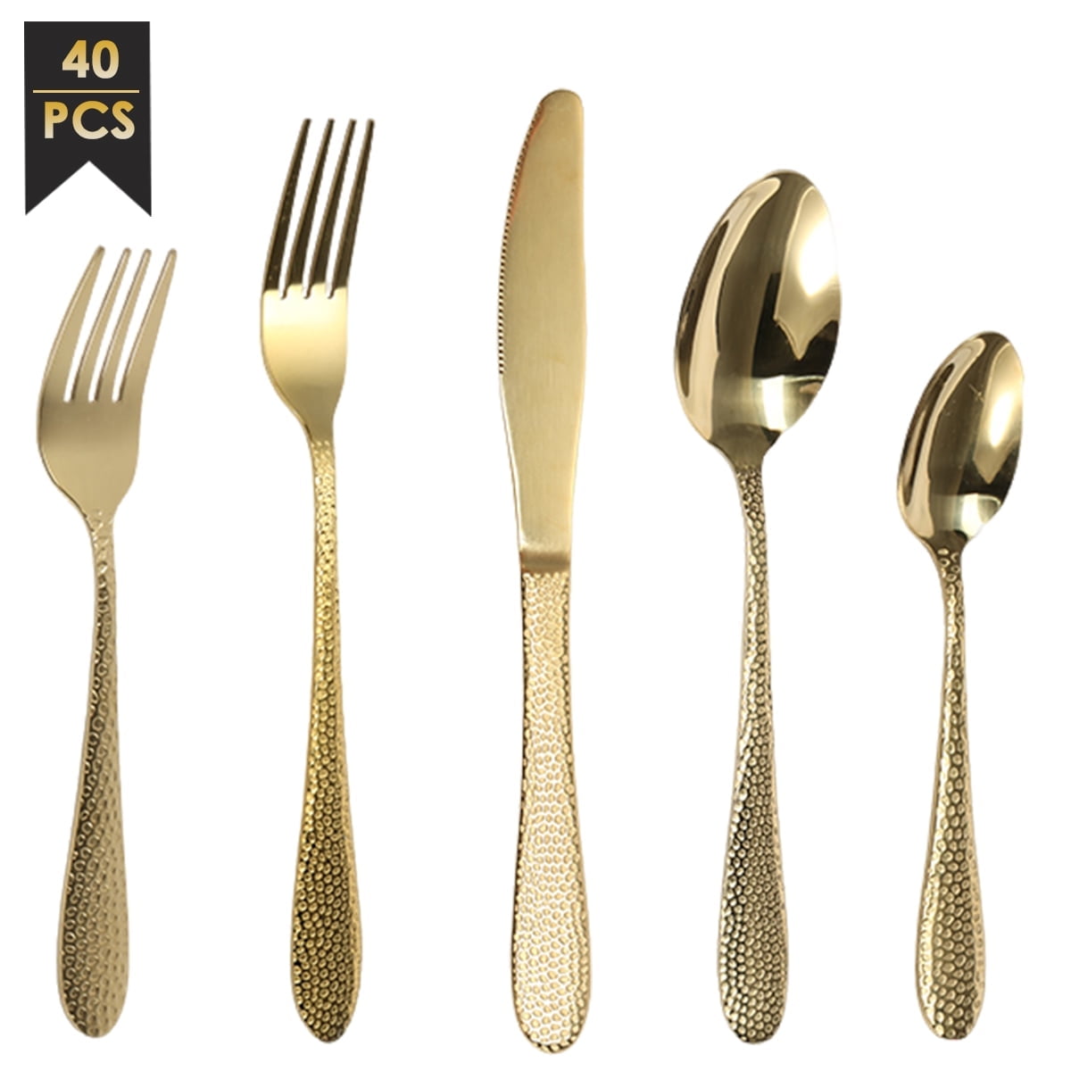 40 Pcs Silverware Set for 8 Stainless Steel Flatware Set Hammered Utensil Set Mirror Polished Cutlery Set Forks Knives and Spoons Set