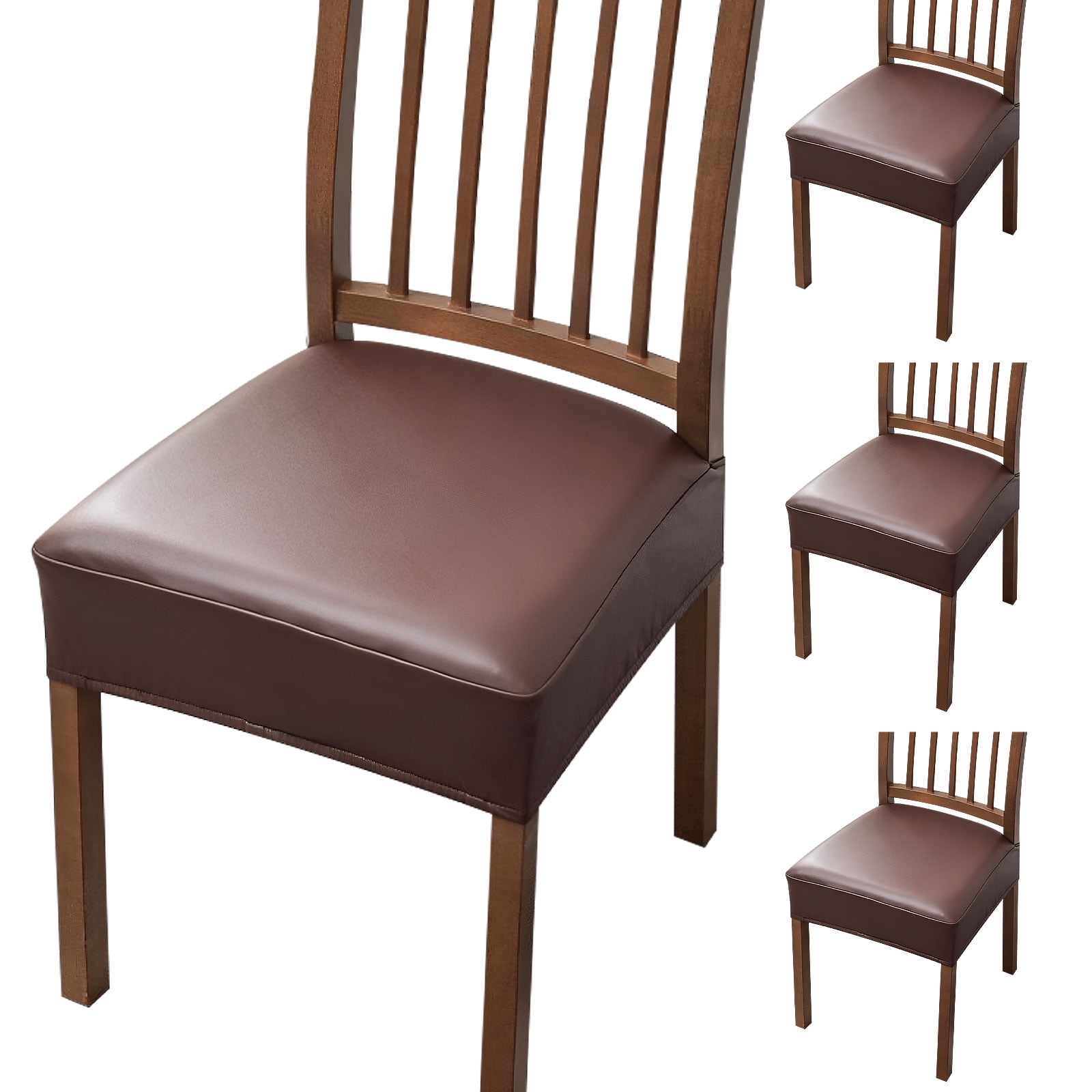 4Pcs Dining Chair Covers Set Waterproof PU Dining Chair Seat Covers Stretch Dining Chair Seat Slipcovers Removable Chair Covers Washable Chair Seat Protector for Home Restaurant