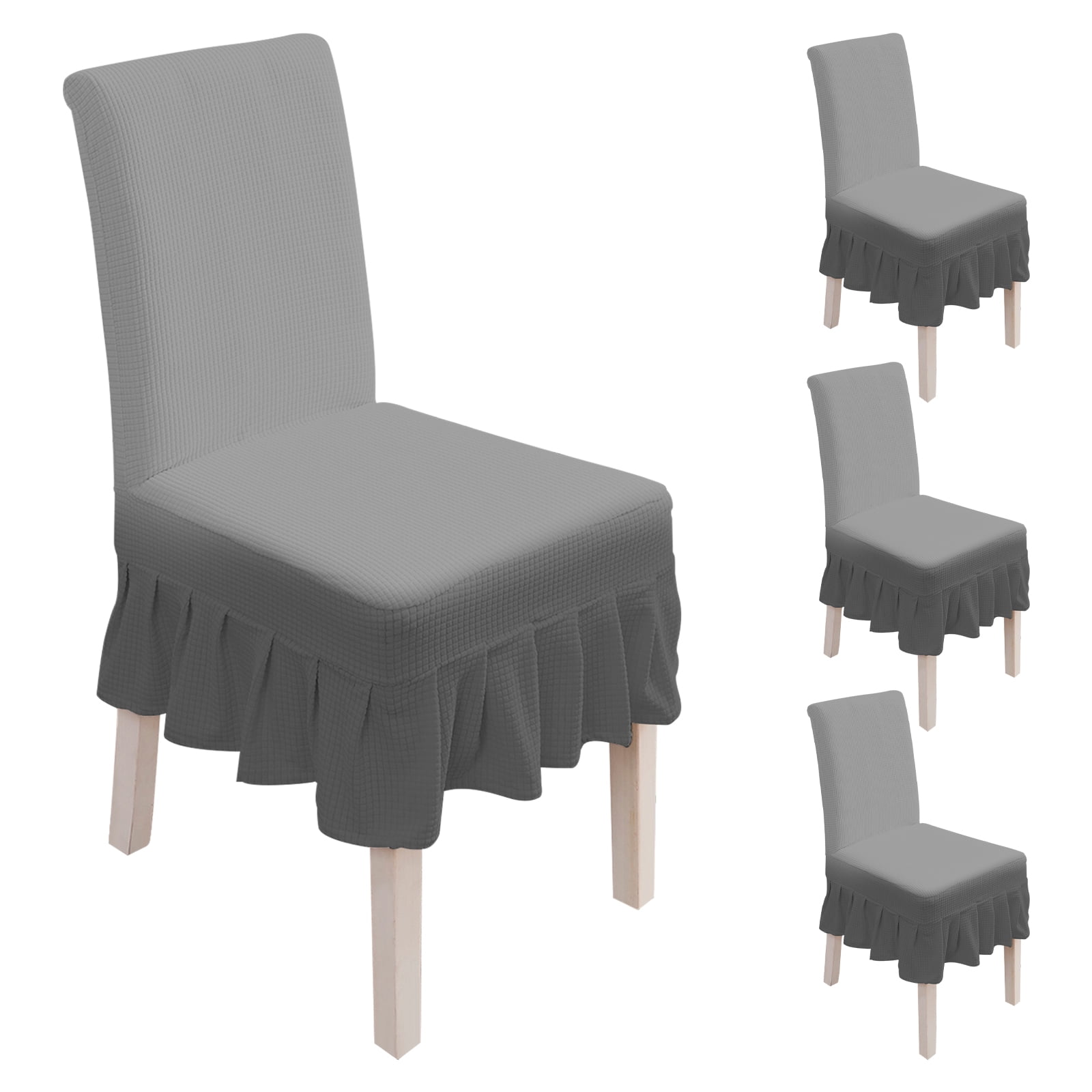 4Pcs Grid Pattern Dining Chair Slipcover With Skirt Soft Waterproof Dining Chair Covers Stretch Hem Dining Room Chair Covers for Kitchen Wedding Party Banquet