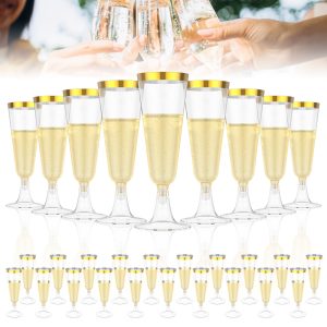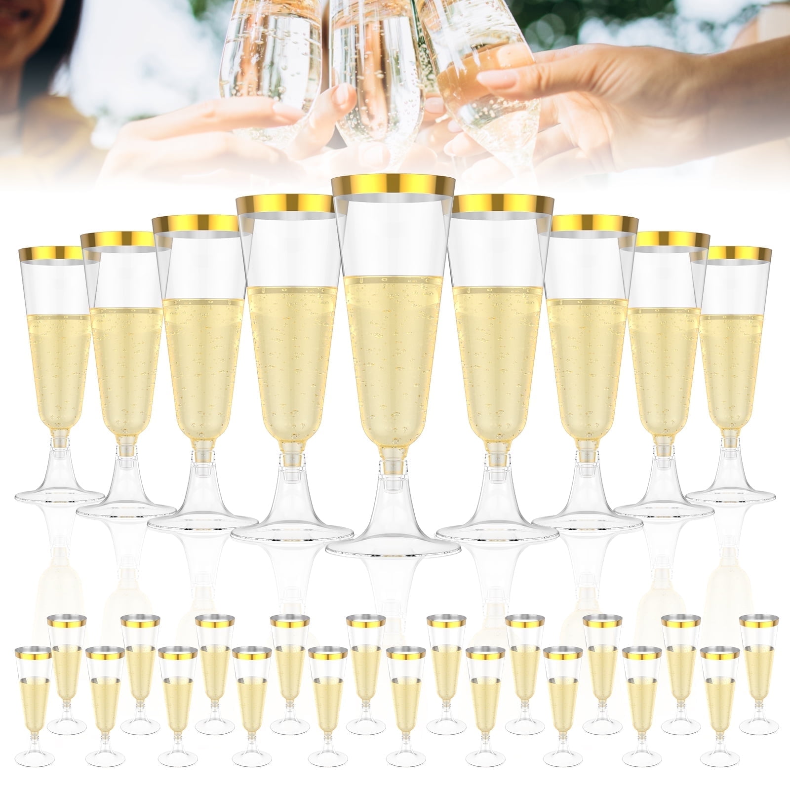 50Pcs Champagne Flutes Glasses PP 5 oz Gold Flute Glasses Unbreakable Clear Champagne Flutes Easy to Clean Tall Champagne Glasses Easy to Grip Mimosa Glasses for Weddings Parties