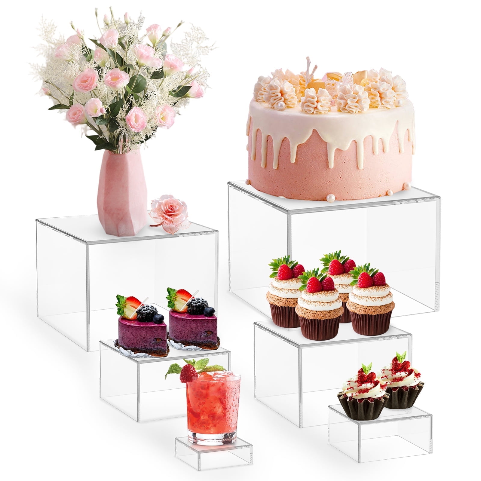 6 Pcs Clear Buffet Risers and Stands Acrylic Food Risers for Buffet Table, Acrylic Risers Display Stands for Wedding Party, Food Display, Collectibles