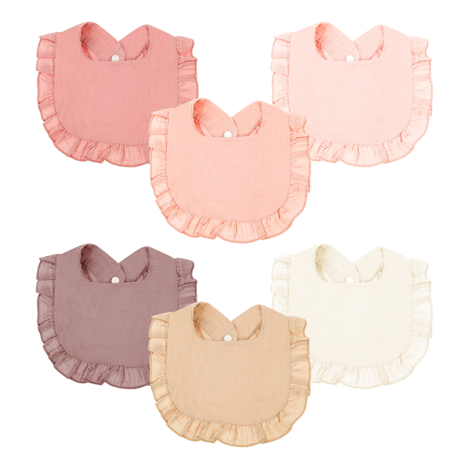 6Pcs U Shape Soft Baby Drooling Bib Adjustable Ruffle Edge Bandana Drool Bib With Press Stud for Unisex Boy and Girl