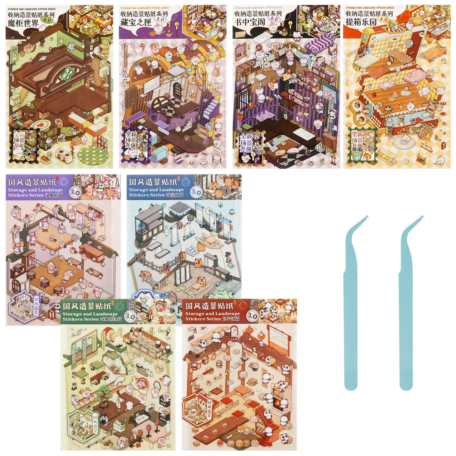 8Pcs DIY 3D House Stickers Set Reusable 3D Cartoon Scene Stickers Funny Mini Room Scene Sticker Cute 3D Miniature Scene Sticker 3D Sticker Scene for Adults