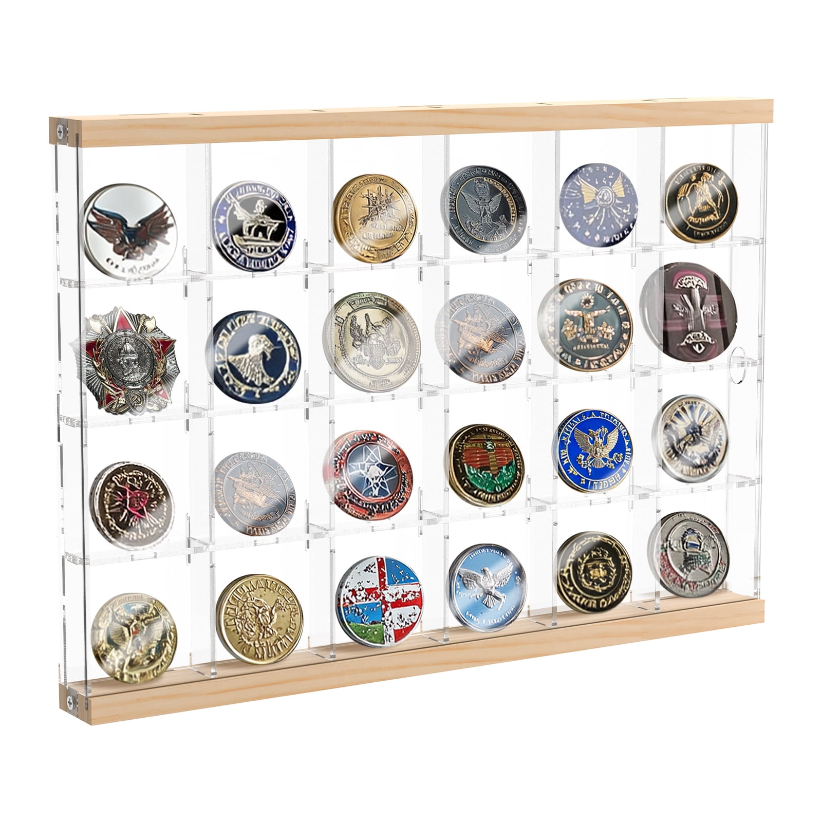 Acrylic Challenge Coin Holder with 16/24 Compartments Clear Challenge Coin Display Box Versatile Pin Display Case for Collectors