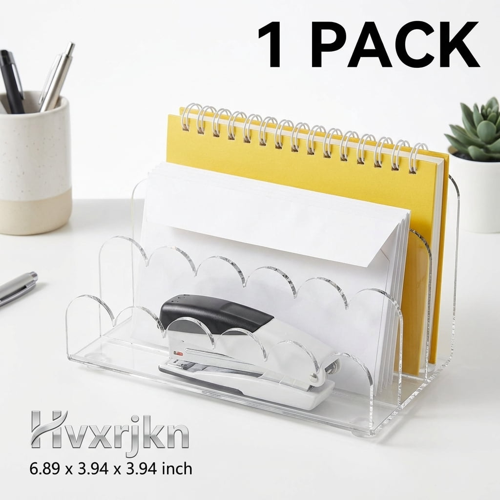 Acrylic Mail Organizer 3 Compartment Laddered Clear Vertical File Holder Countertop Upright Scalloped Envelope Folder for Envelope Bill Mail