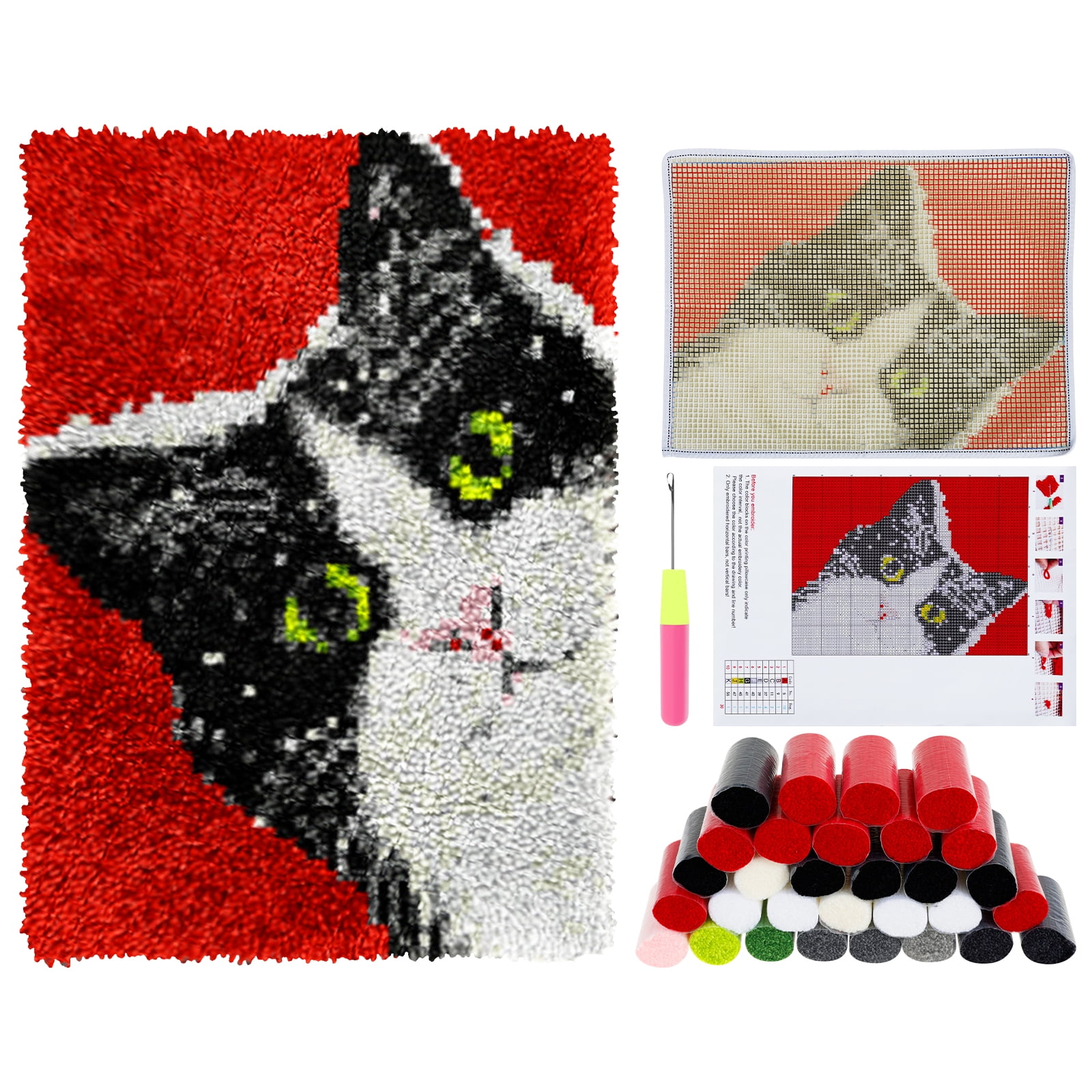 Animal Cat Style Latch Hook Rug Kit Pre Printed Bright Color Latch Carpet Making Kit for Adults Kids Beginners