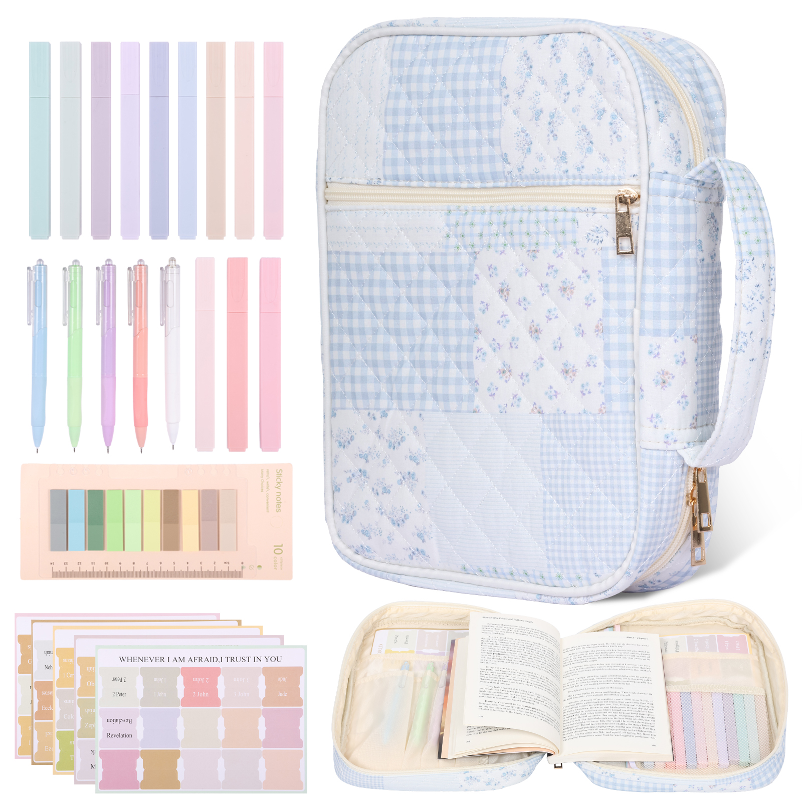 Bible Cover Case for Women Large Bible Cover Bag Study Supplies Journaling Kit Book Carrying Case with Highlighter Christian Present for Women