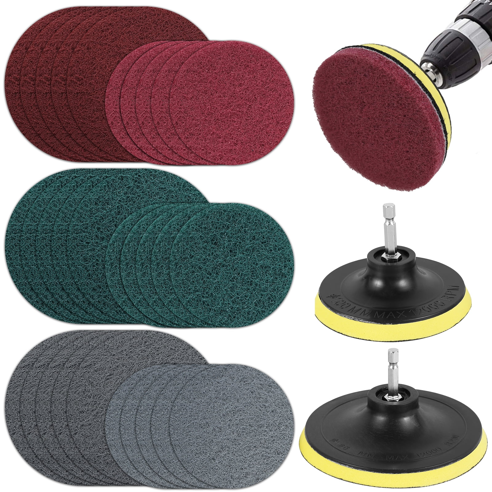 BUTORY 32Pcs Round Scrub Pads 4/5inch Wear-Resistant Power Drill Scouring Pad with 4/5inch Disk Pad Holder Reusable Tile Cleaning and Polishing Pad Kit for Tile Bathtub Glass