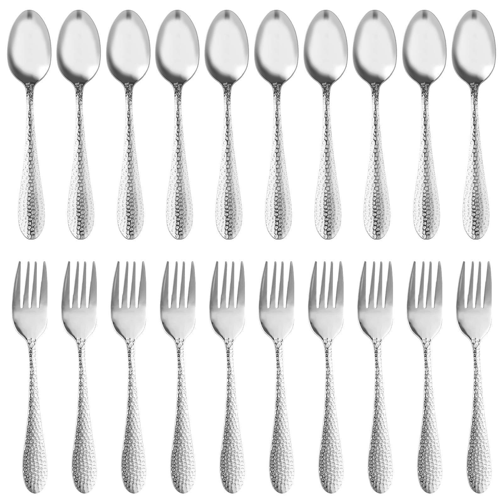 cwhniev 20 Pieces Kids Silverware Set, Stainless Steel Toddler Utensils, Hammered Style Kids Spoons and Forks, Children Cutlery Includes 10 Kid Spoons, 10 Kid Forks for Home Preschools