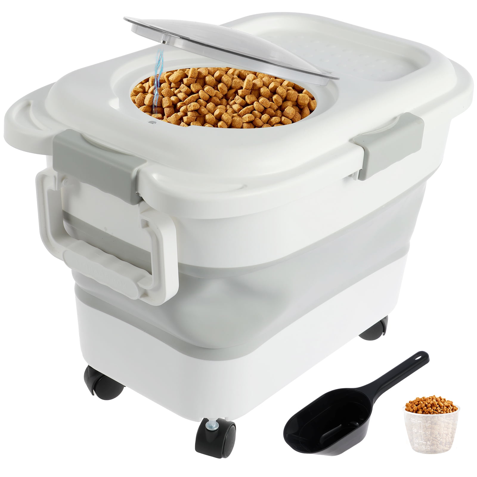 Dog Food Storage Containers 15-20 Lbs Collapsible Dog Food Storage Container with Removable Wheels-with Measuring Cup &Scoop Cat Food BinWith Small Pet Food Container to Keep Dry Food Fresh