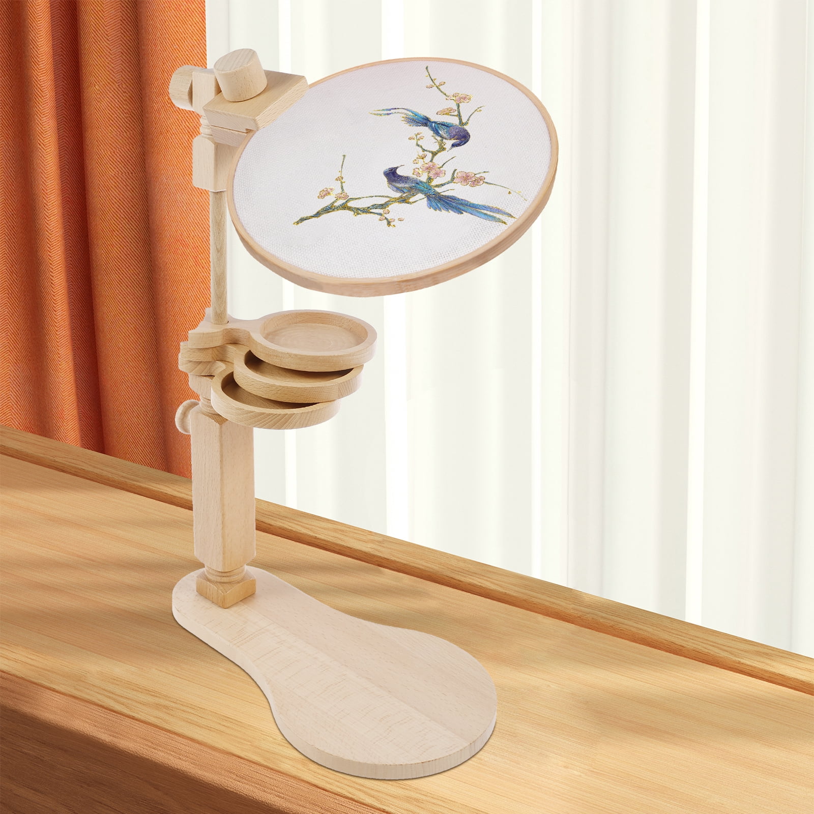 Embroidery Hoop Stand with Storage Trays Adjustable Embroidery Frame Stand Practical Cross Stitch Hoop Holder Sturdy Embroidery Hoop Frame for Sewing Arts Crafts Needlework