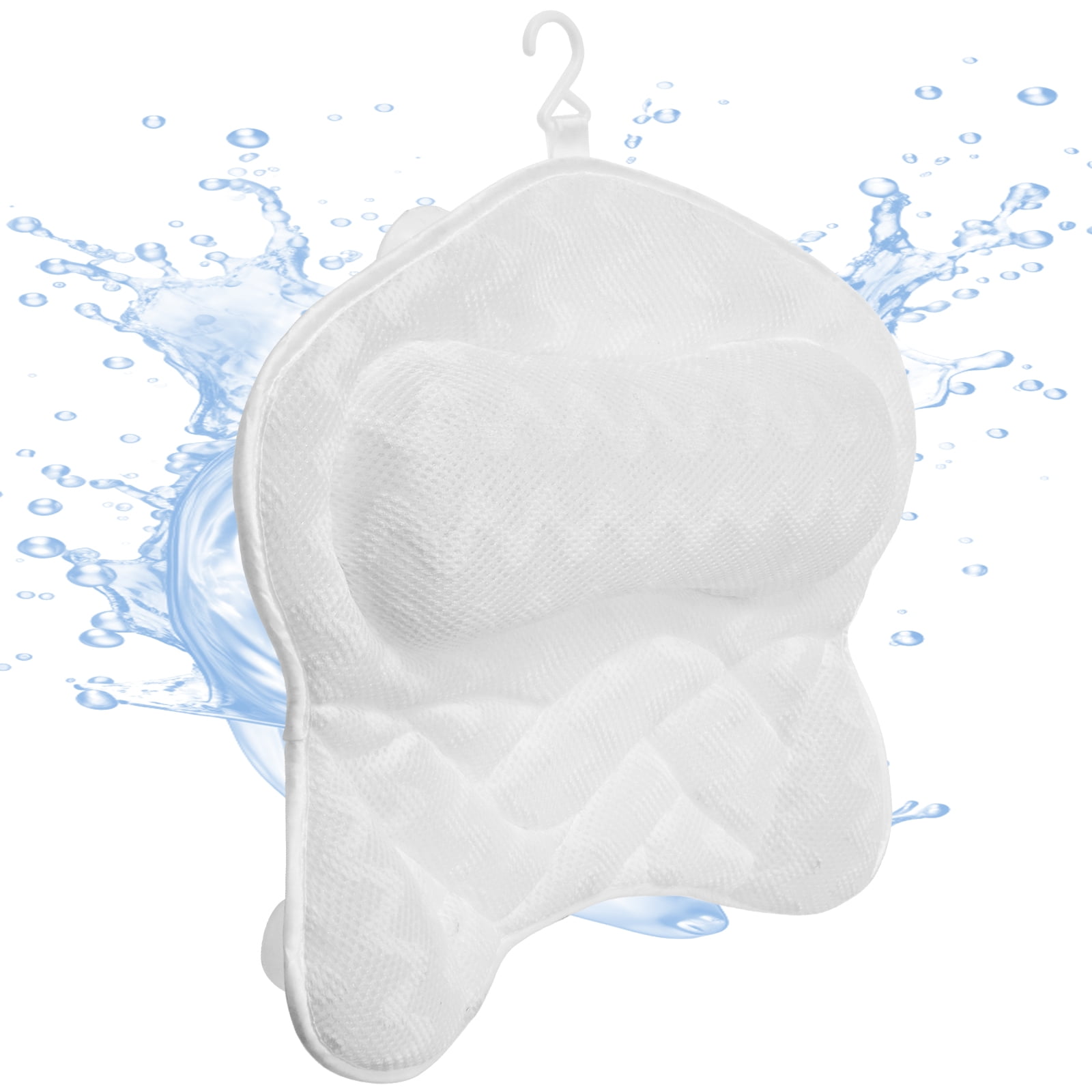 Ergonomic Bath Pillow Breathable Air Mesh Bathtub Pillow with 6 Suction Cup and Hook Practical Bathroom Accessories for Neck and Back Support