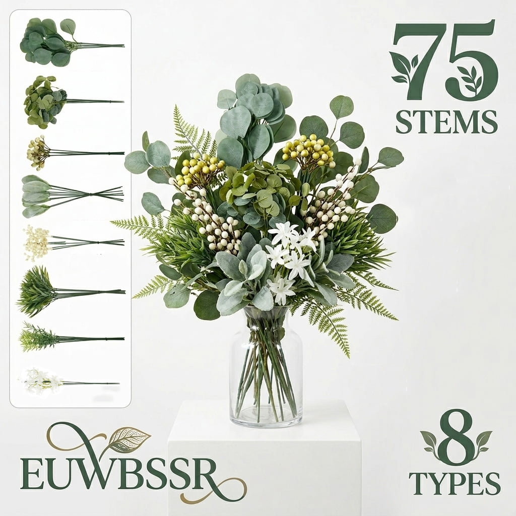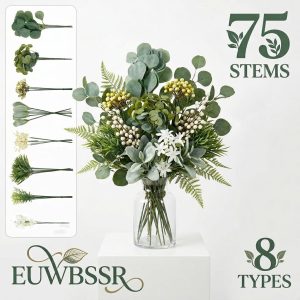 EUWBSSR 75Pcs Artificial Greenery Stems Combination Set Artificial Wedding Bouquet Set Faux Flowers Kit for Wedding Home Decoration