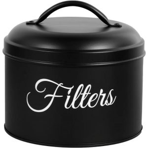 EUWBSSR Coffee Filter Storage Case,Coffee Filter Holder Stainless Steel Round Basket Coffee Filter Storage with Lid and Top Handle,Black