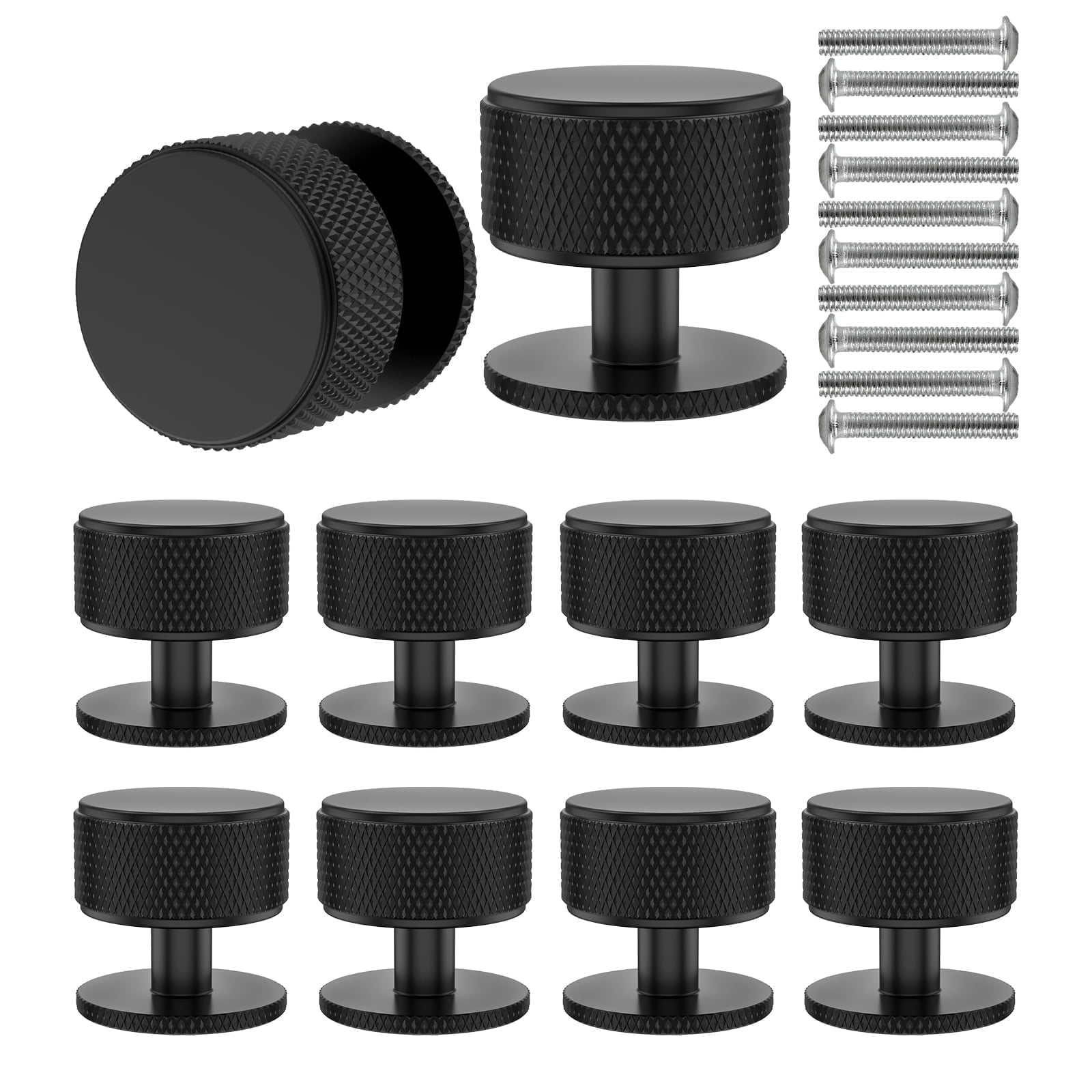 Evjurcn 10 Pcs Black Cabinet knobs with Install Screws Aluminum Alloy Drawer Knobs 1.1in Knobs Pull Handles for Cabinet, Drawer, Dressers, Wardrobe