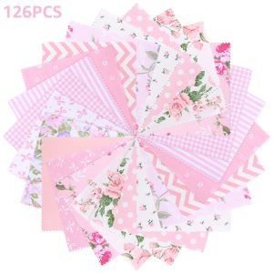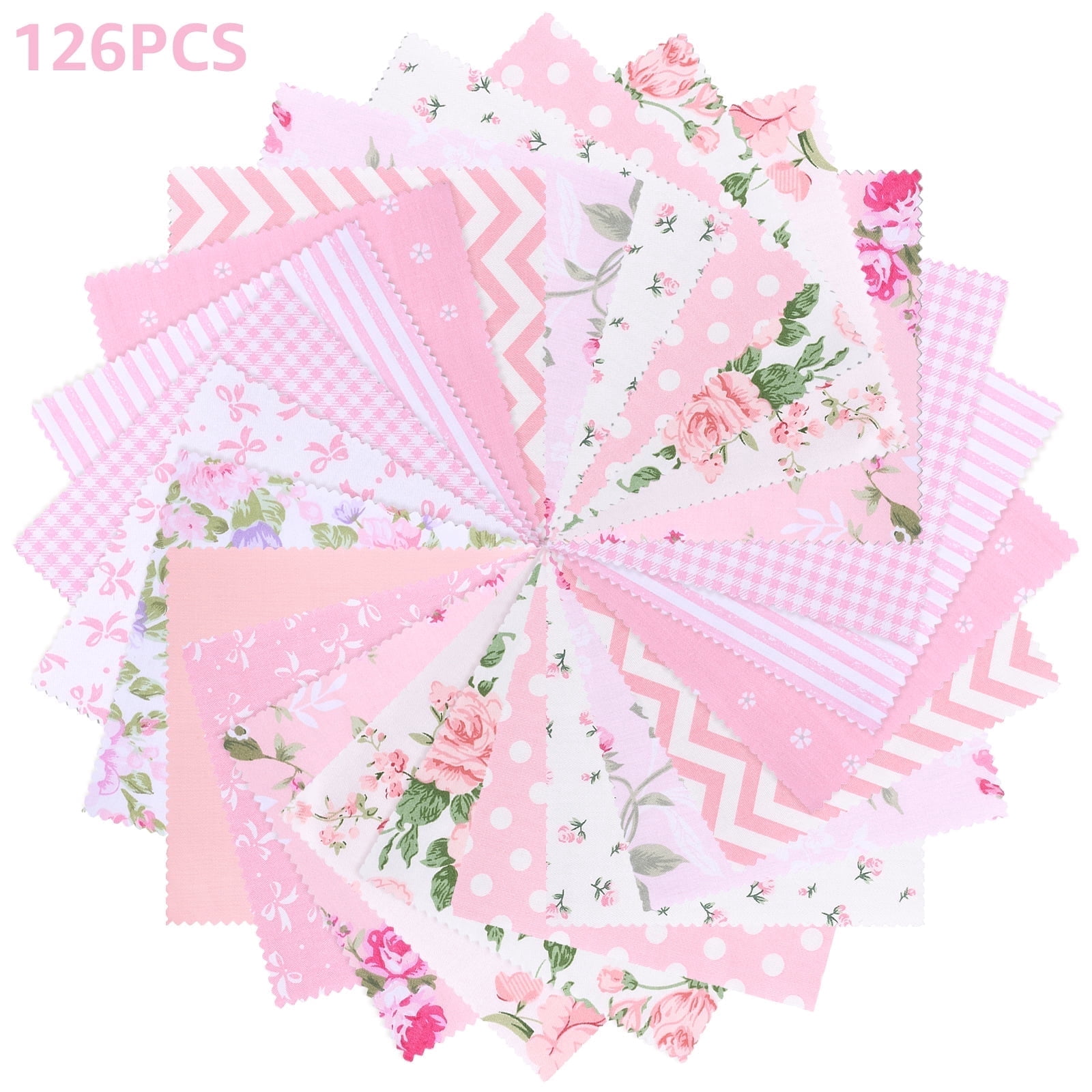 Evjurcn 126 Pcs Pink Charm Packs for Quilting 5 x 5Inch 100% Cotton Fabric Squares Soft Quilting Fabric Floral Patchwork for Sewing DIY Craft