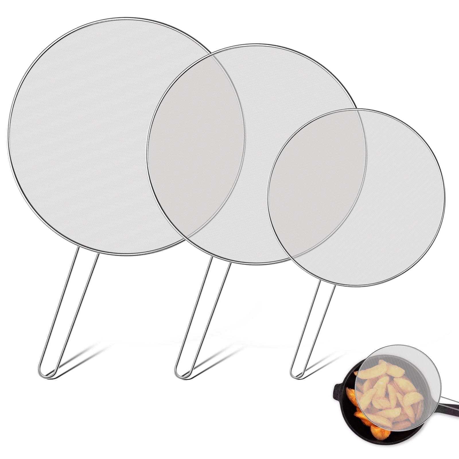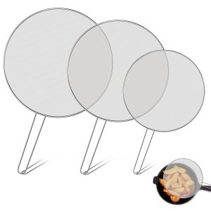 Evjurcn 3Pcs Stainless Steel Fine Mesh Splatter Screen for Cooking Frying Pan Splash-Proof Oil Splatter Guard with Hanging Handle ( 9.8″, 11″, 13″)