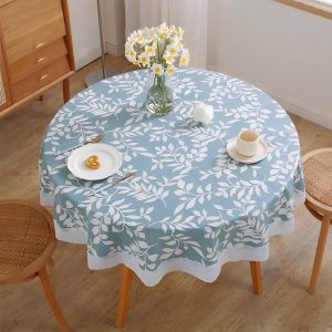 Evjurcn Indoor Outdoor Patio Round Tablecloth, Polyester Backing, 60 Inch Waterproof Oilproof Table Cloth, Wipeable PVC Table Cover, Leafy Pattern, for 3-6 Seat Table