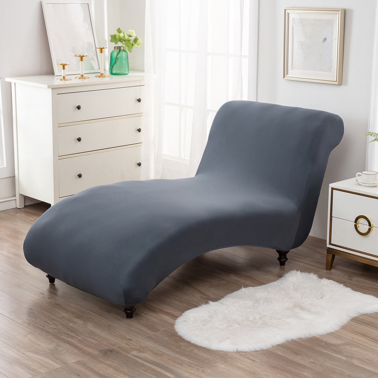 Full Wrap Chaise Lounge Cover Machine Washable Stretch Armless Lounge Cover With Bottom Strap for Living Room Indoor Bedroom