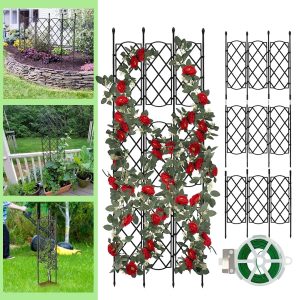 Garden Plant Trellis Upgraded Black for Climbing Plants Outdoor, Rustproof Plastic+Metal Plant Trellis Support, Tall Plant Trellis Frame for Climbing Vines Flower Vegetable Rose Indoor Outdoor Trelli