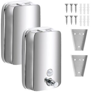 Hvxrjkn 2Pcs Commercial Soap Dispenser 4.72*2.17*7.87in Stainless Steel 1000ml Wall Mount Manual Liquid Pump Rust Proof Leak Free for Bathroom