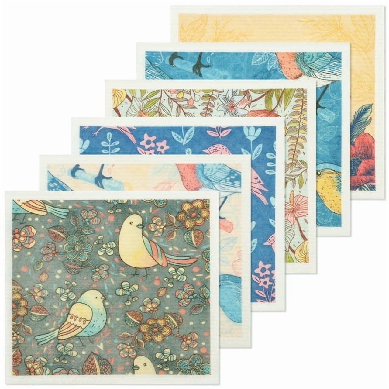 Hvxrjkn 6Pcs Swedish Dishcloths Reusable Kitchen Dish Towels Absorbent Dishcloths Washable Soft Cellulose Sponge Cloths 7.7 x 6.7in Kitchen Wash Rag for Washing Dishes