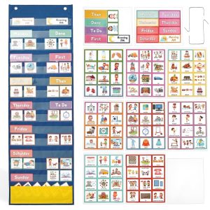 Hvxrjkn Visual Schedule for Kids,Magnetic Weekly Planner Board Toddlers Bedtime Routine Chart with 137 Cards for Home School,42.91*13.78in