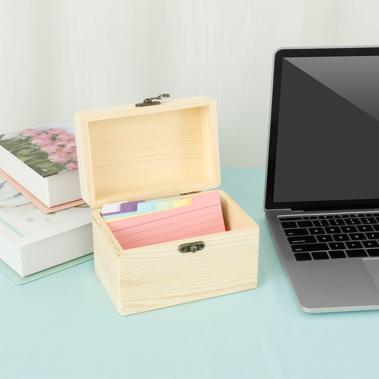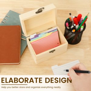 Sturdy : The index card box is crafted from wood with exquisite craftsmanship , boasting an attractive appearance and long lasting durability