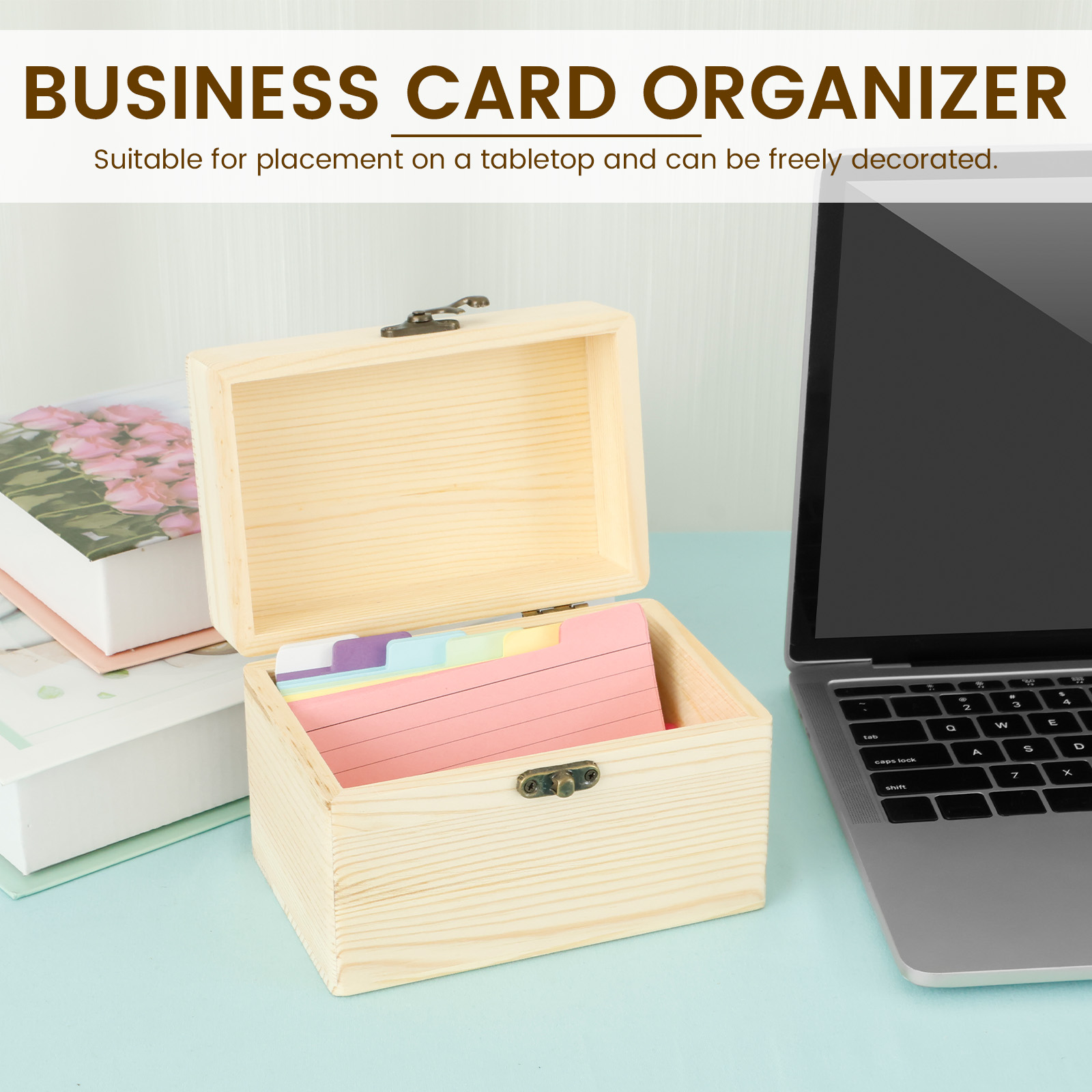 Index Card Holder Wooden Business Card Organizer Large Capacity Recipe Storage Box with 150 Cards for Desk Home