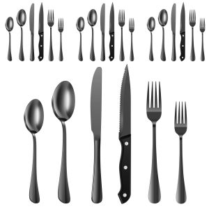 Jetcloudlive 24 Pieces Silverware Set with Steak Knives, Stainless Steel Flatware Cutlery Set for 4, Fancy Tableware Eating Utensils for Home Kitchen Restaurant