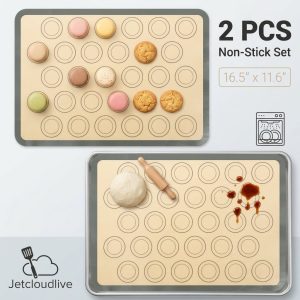 Jetcloudlive 2Pcs Macaron Silicone Baking Mat 16.5″ x 11.6″ Reusable Cookies Pastry Sheet Liner Easy to Clean Half Baking Sheet