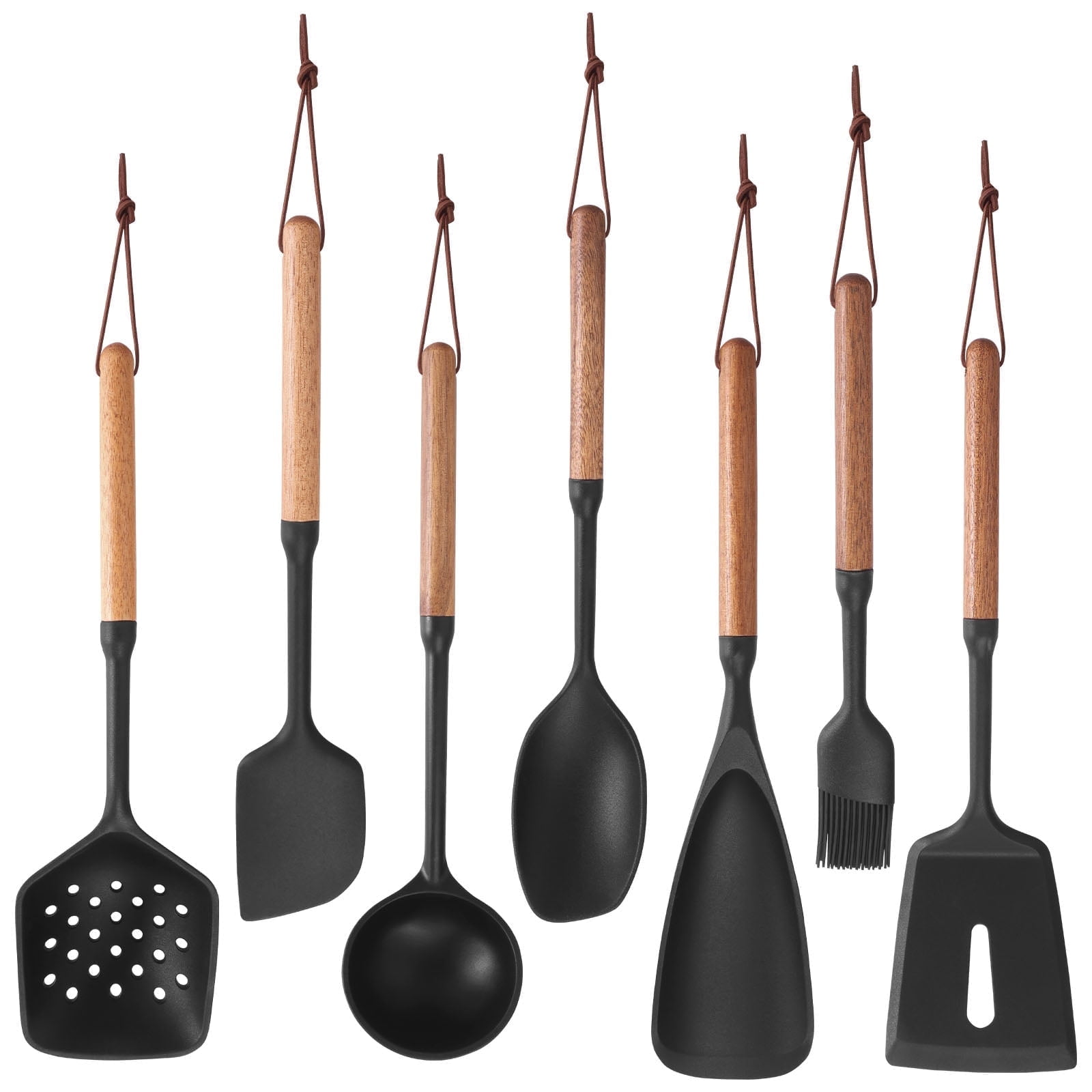 Jetcloudlive 7 Pcs Silicone Cooking Utensil Set with Wood Handle Heat Resistant Kitchen Utensil Set Nonstick Cookware Friendly Suitable for Kitchen