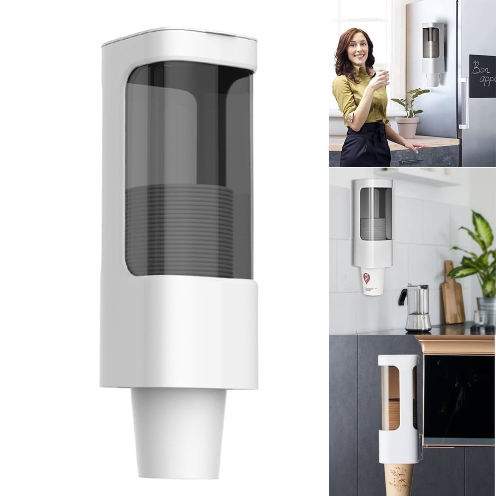 JTWEB Wall Mounted Paper Cup Dispenser, Pull Type Holder, Fits 3oz 5oz Small Disposable Cups, Bathroom Cup Dispenser for Home Hospital Office Gym??3.15*3.15in Adhesive Hooks are Needed??